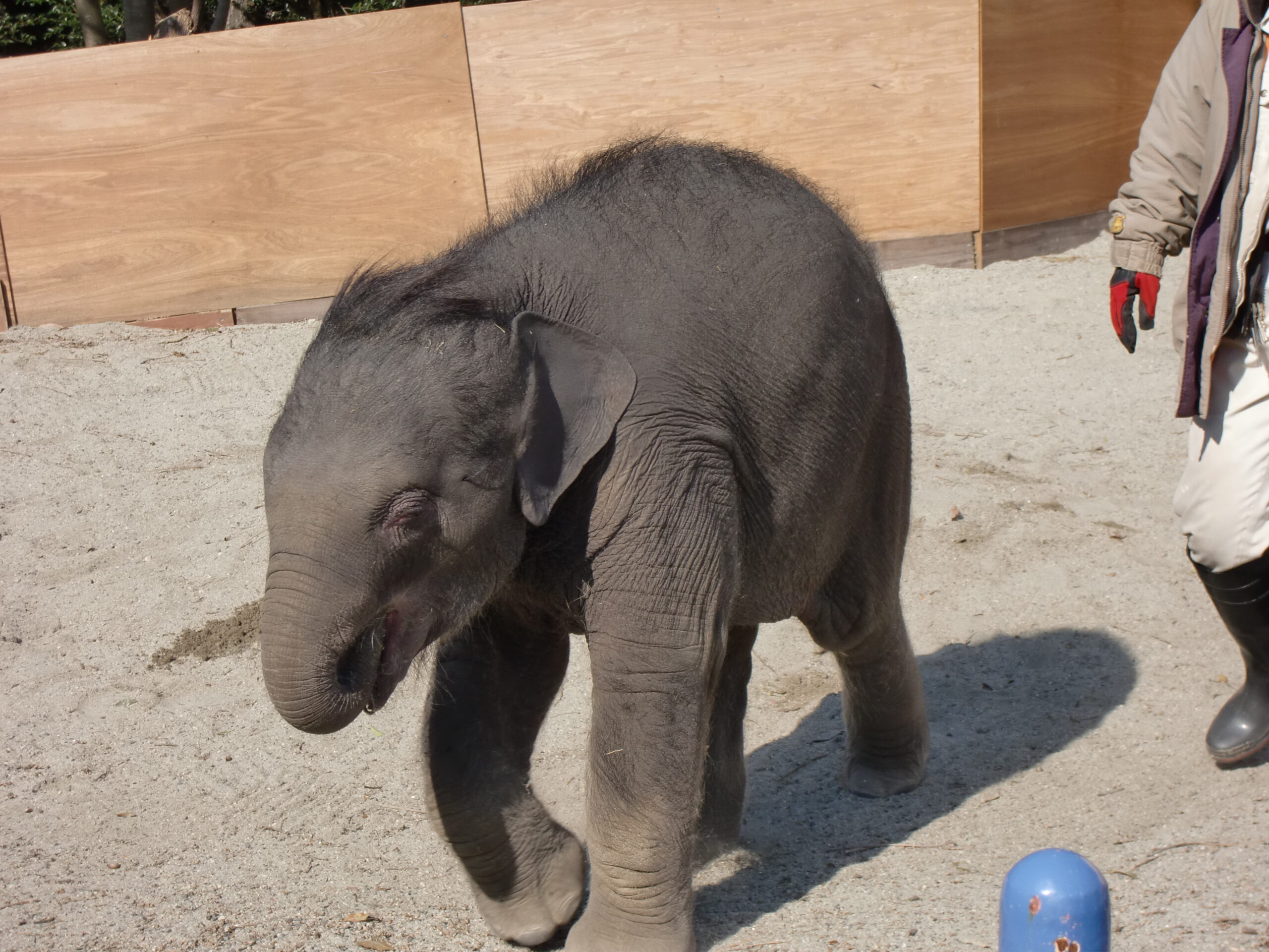 この日はとても寒かったですが、元気いっぱい。また飼育員さんからの愛情を一身に受けていました。