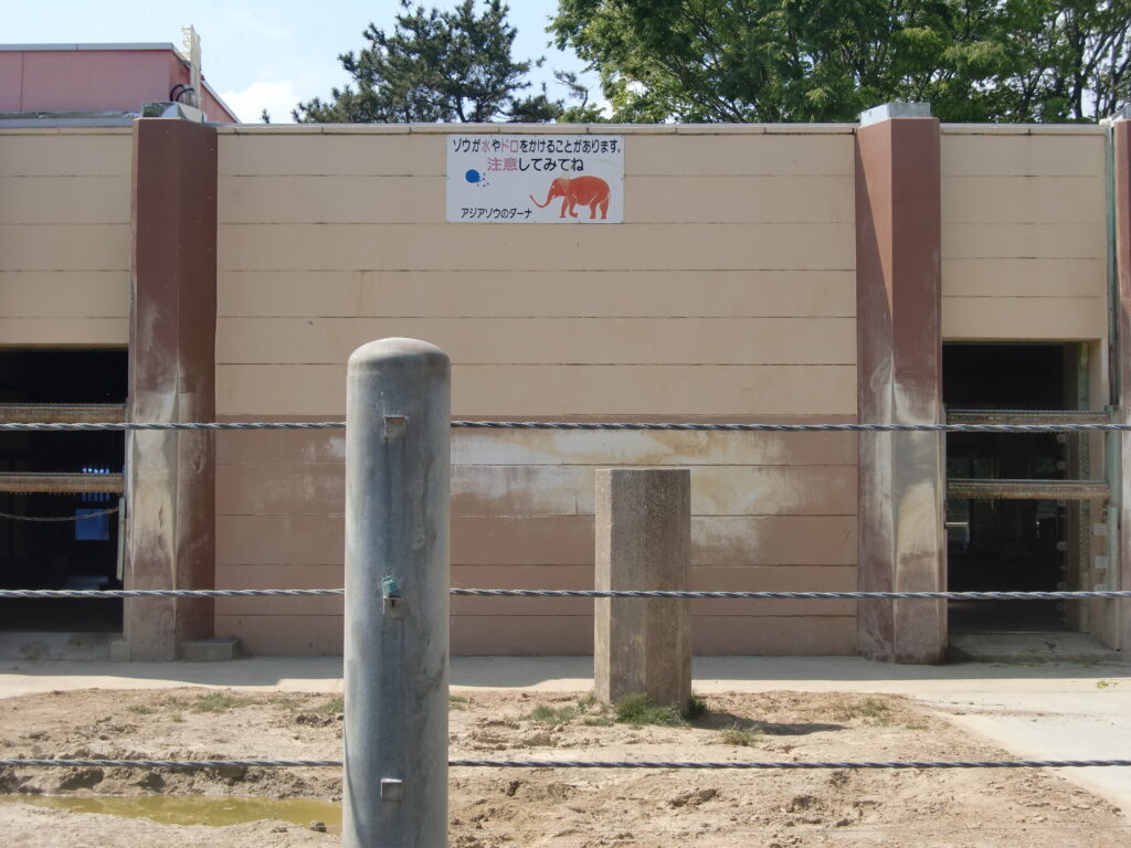 寝たきりになり、ゾウ舎も増築された噂を聞いていたので、別の場所に移動したかと思っていましたが、おそらく生まれてからずっと同じ場所(部屋)にいるようですね。(※これはゾウ舎裏から撮影しています。)