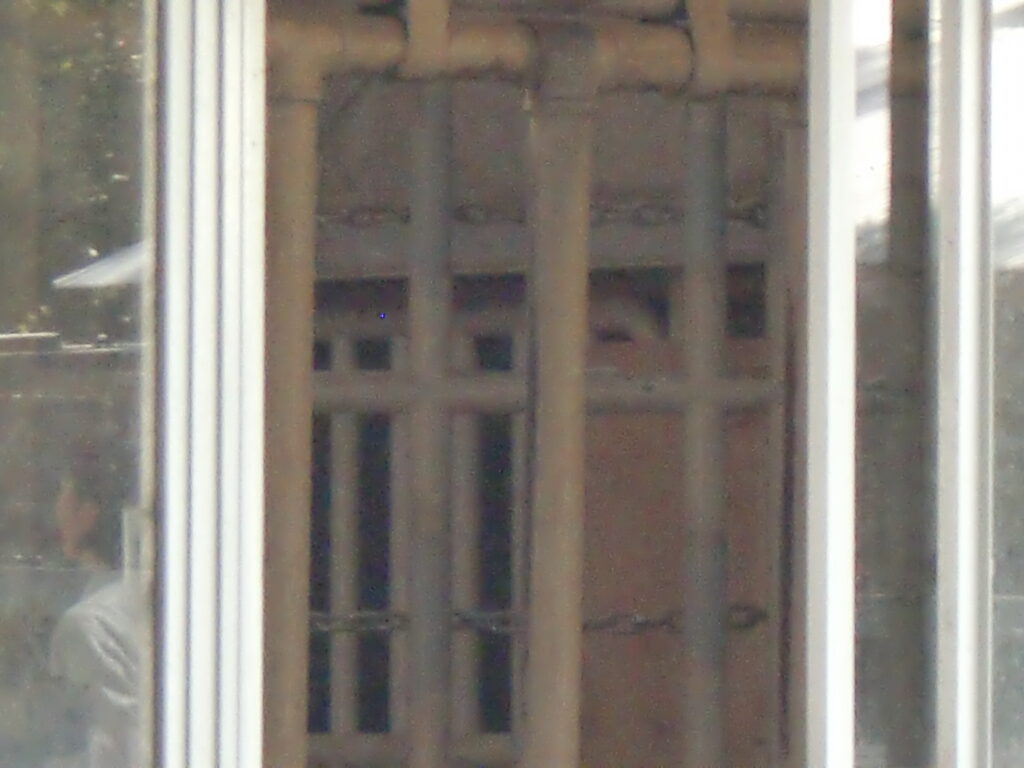 看板の下、壁の色が白くはげている内側にマーラがいます。