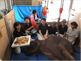 GWが終わって間もなく、2013年5月14日にタイ王国から国立ゾウ研究所ゾウ動物病院長シティデット・マハサワンクル氏とチェンマイ大講師、チャレアムチャット・ソムギルド氏(36)でともに獣医師が来日。