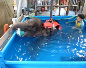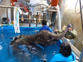 アジアゾウ:両前脚骨折「マーラ」、タイの獣医が治療指導 「経過良好、一層のリハビリを」
