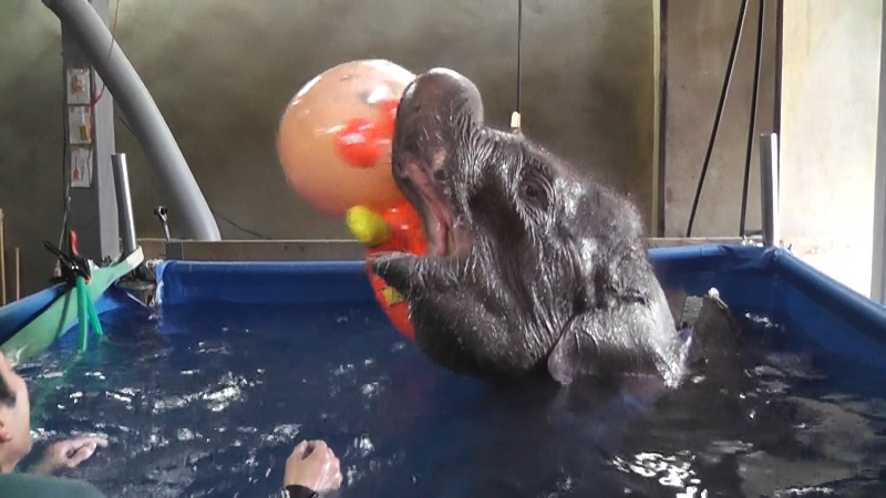 マーラも他の赤ちゃんゾウと同じようにボールが気に入っている様子。