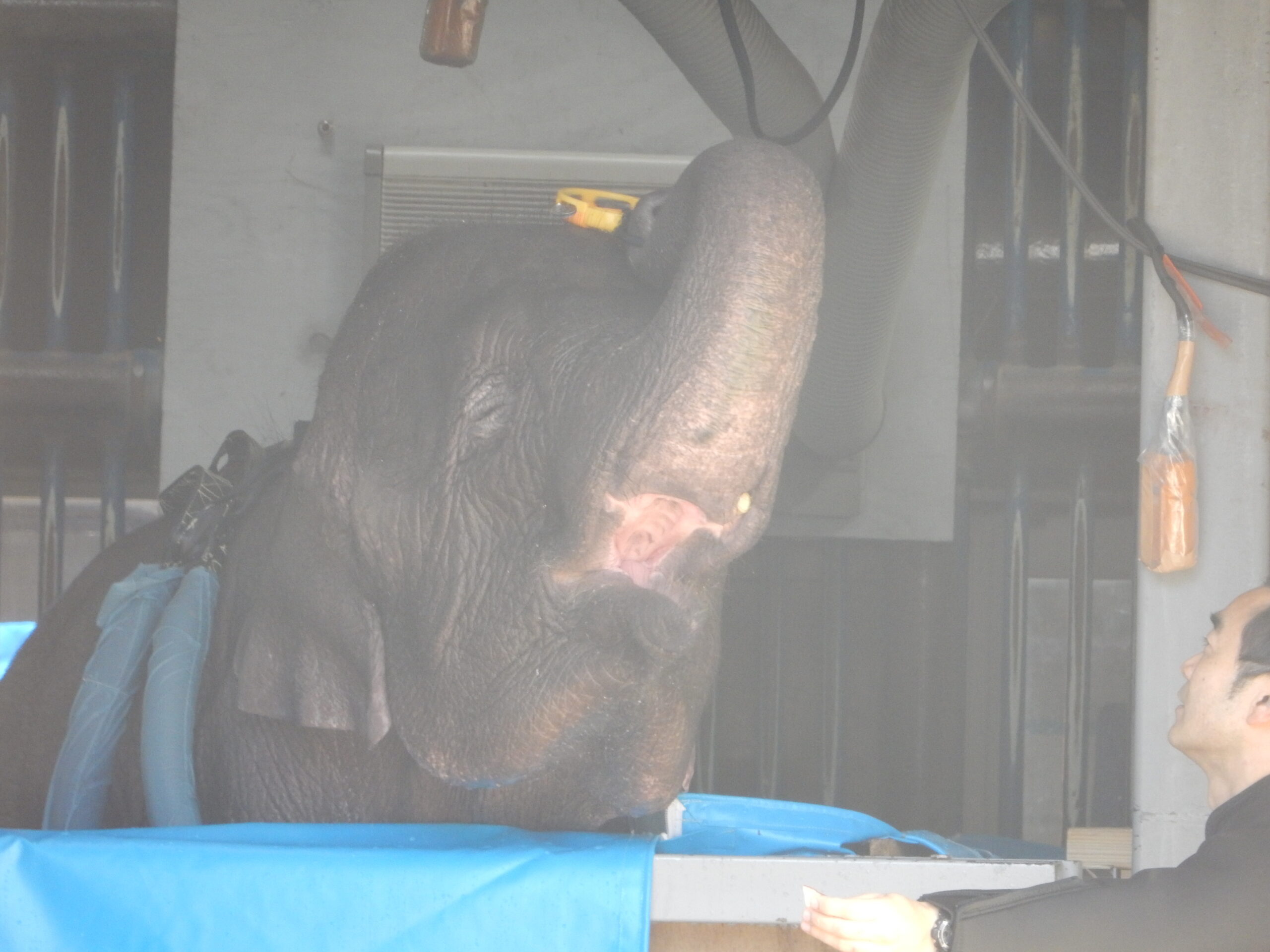 ゾウさんは生きている限り成長し続けます。リハビリは続けているものの・・・基本的に寝たきりの状態ですから体重の増加は少し心配です。
