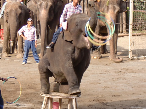 ショーが終わり、おそらくランディのゾウさんリフト中か何か、ゾウ舎に戻る前にゾウ使いさんと一緒にトレーニングをしている時です。