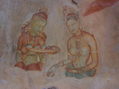 ガイドブックで一番使用されている有名なシギリヤレディ・・・。この壁画は謎が多く、ほとんどこの存在の意味や理由がわかっていないんだとか・・・。