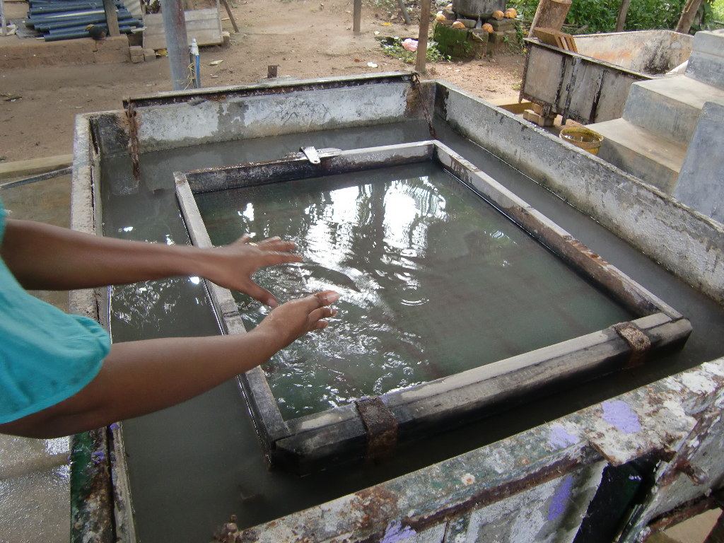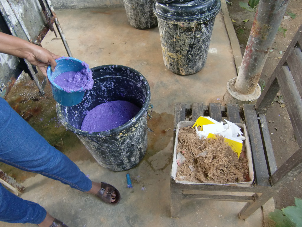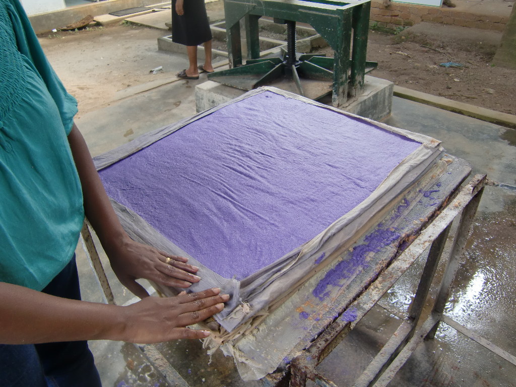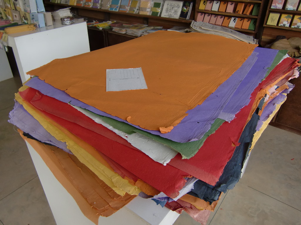 ゾウさんのうんち乾燥させ、紙を細かくしたパルプ?を混ぜて、染料を入れる??(苦笑)