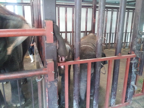 檻の中にいるゾウさんにバナナやニンジンをあげられても、鼻先でつかませる程度の距離が保たれています。