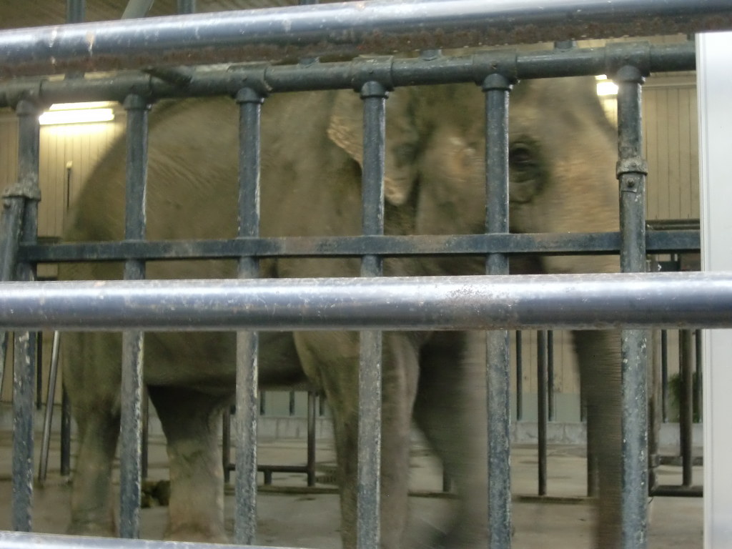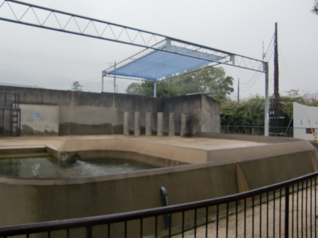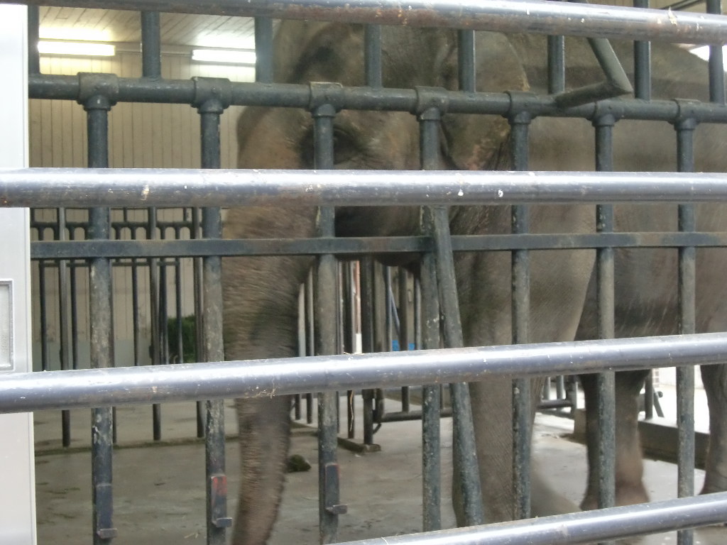 そう、残念ながら・・・私が到着する前に結構な量の雨が降ったらしく(涙)、美都さんは・・・放飼場からゾウ舎内に移動してしまっていましたぁ(ToT)残念。