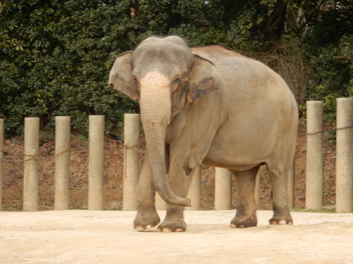 暖冬の良いところは、真冬でもゾウさんたちが(気持ち)暖かく過ごせるところと、そこに行く私も、と思っていたのに、先日突然の雪。(涙)