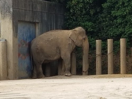井の頭動物園で暮らしていた「はな子」さんのコンクリートの放飼場、お客様側が低く、奥が高く斜めになっていたようで、これがはな子さんがお客様側にお尻を向けていた理由ではないか、と言われています。