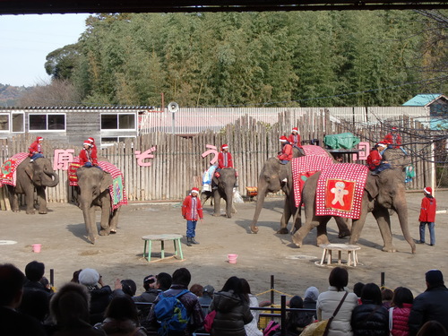 イベントというか、ゾウさんがクリスマスのオーナメントをつけて行進したり、ゾウ使いさん、スタッフさんがサンタ帽を被っているといったものです。。。