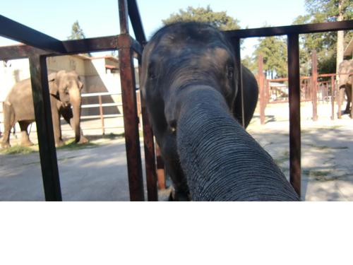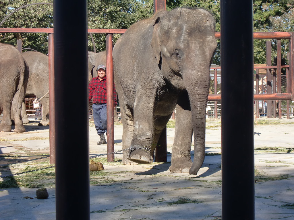 後ろでニコニコしているゾウ使いさん(笑)ではなく、手前の柵の右柱で隠れてしまっていますが、そこにゆめ花のゾウ使いさんがいるんです。
