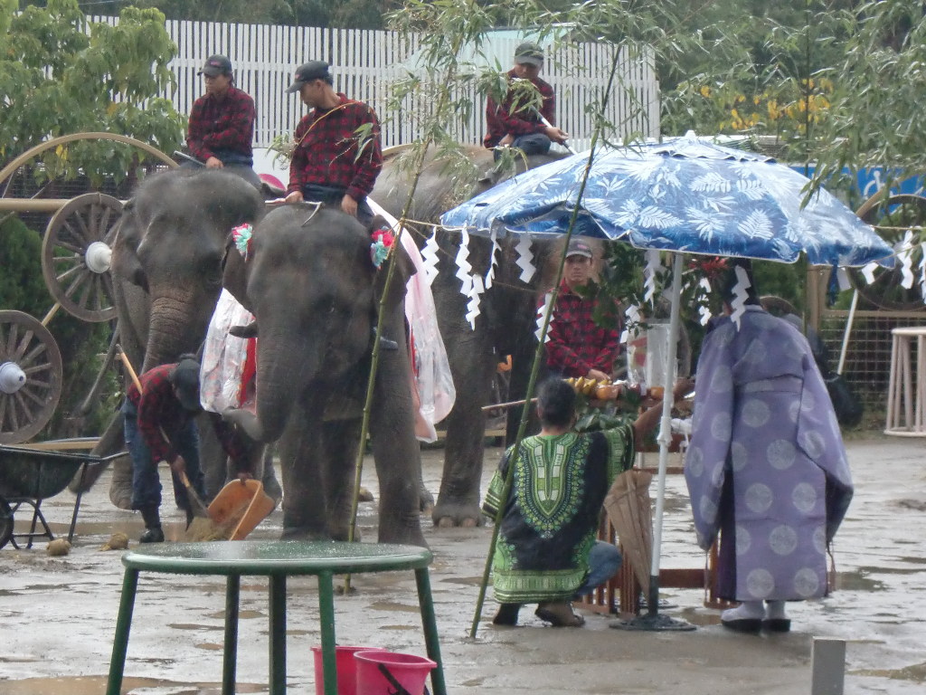 せっかくだから続きはゾウさんショー広場で見よう!とここで中断したら・・・雨により、完成品を見ることができませんでした!!これで皆さまも道連れです。(爆笑)