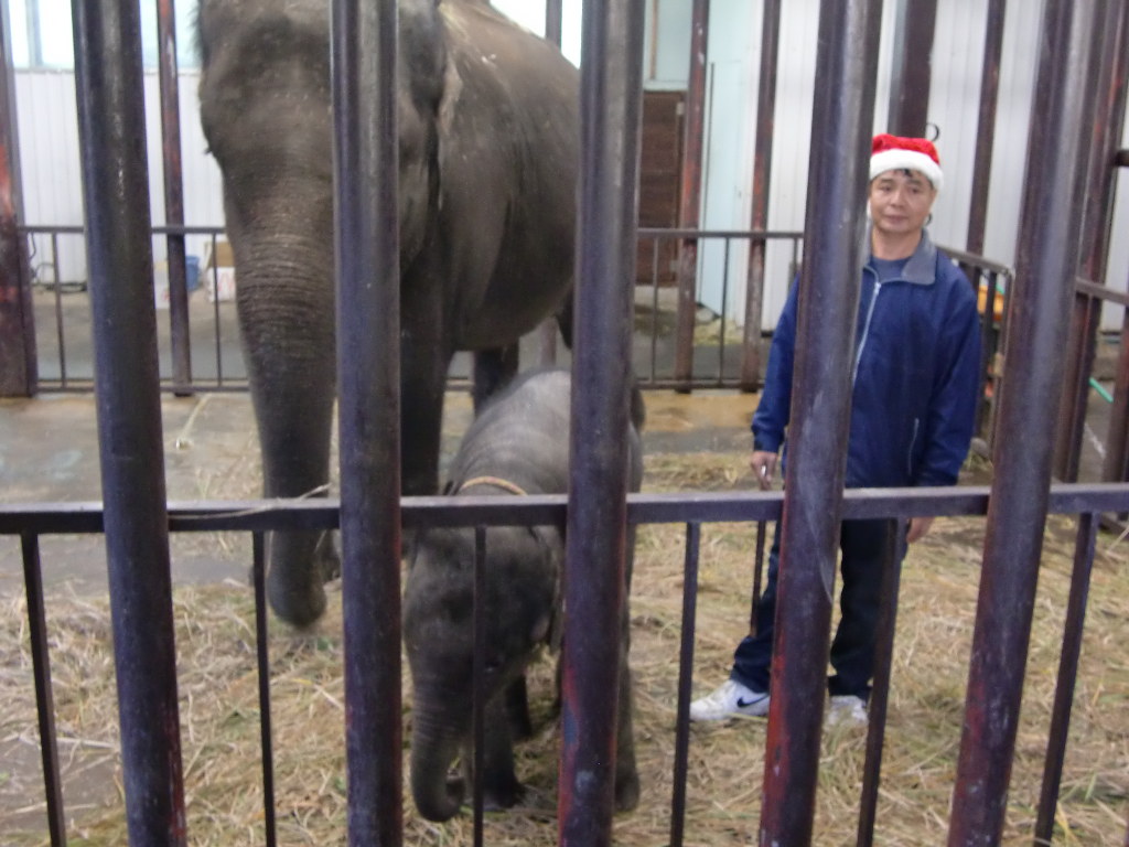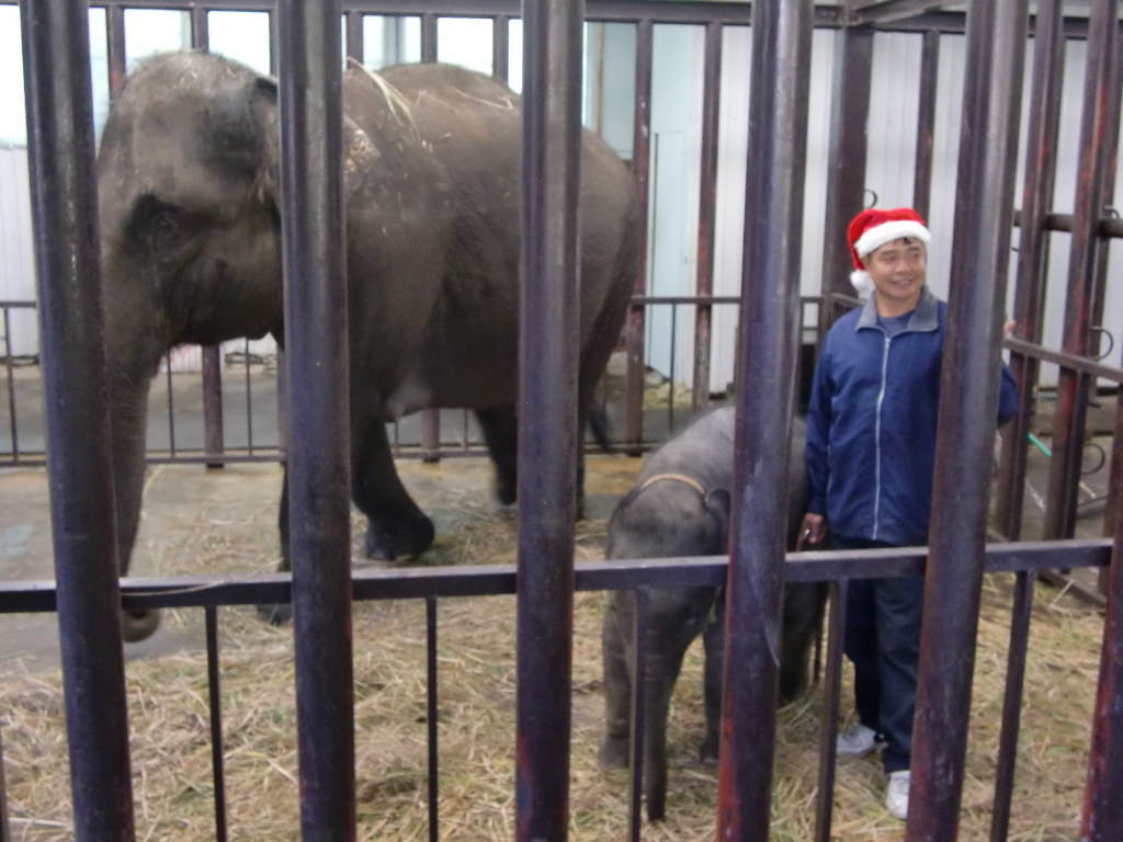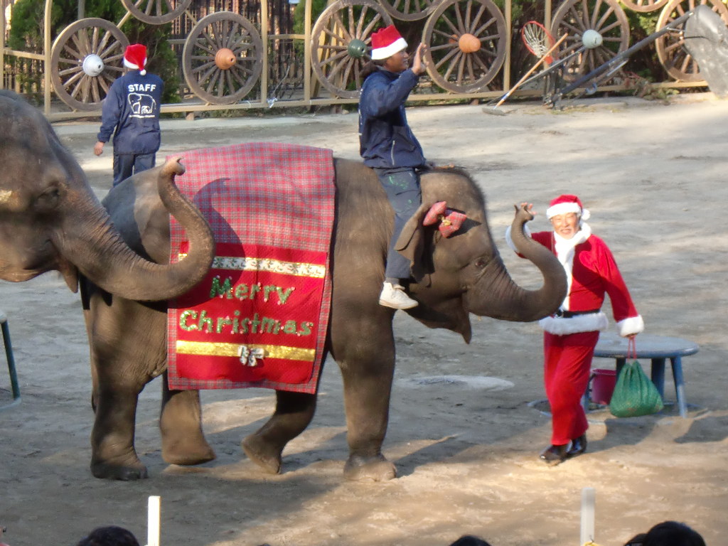 ゾウ使いさん、せっかくサンタ帽をかぶっているのですが、制服が紺色になっているため、去年よりサンタ色が弱くなっています・・・(笑)