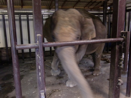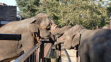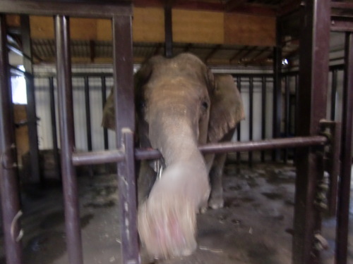 ミニスターとゆめ花(か)は最後のゾウさんショーが終わると、ゾウ舎の中に入ってしまいます。