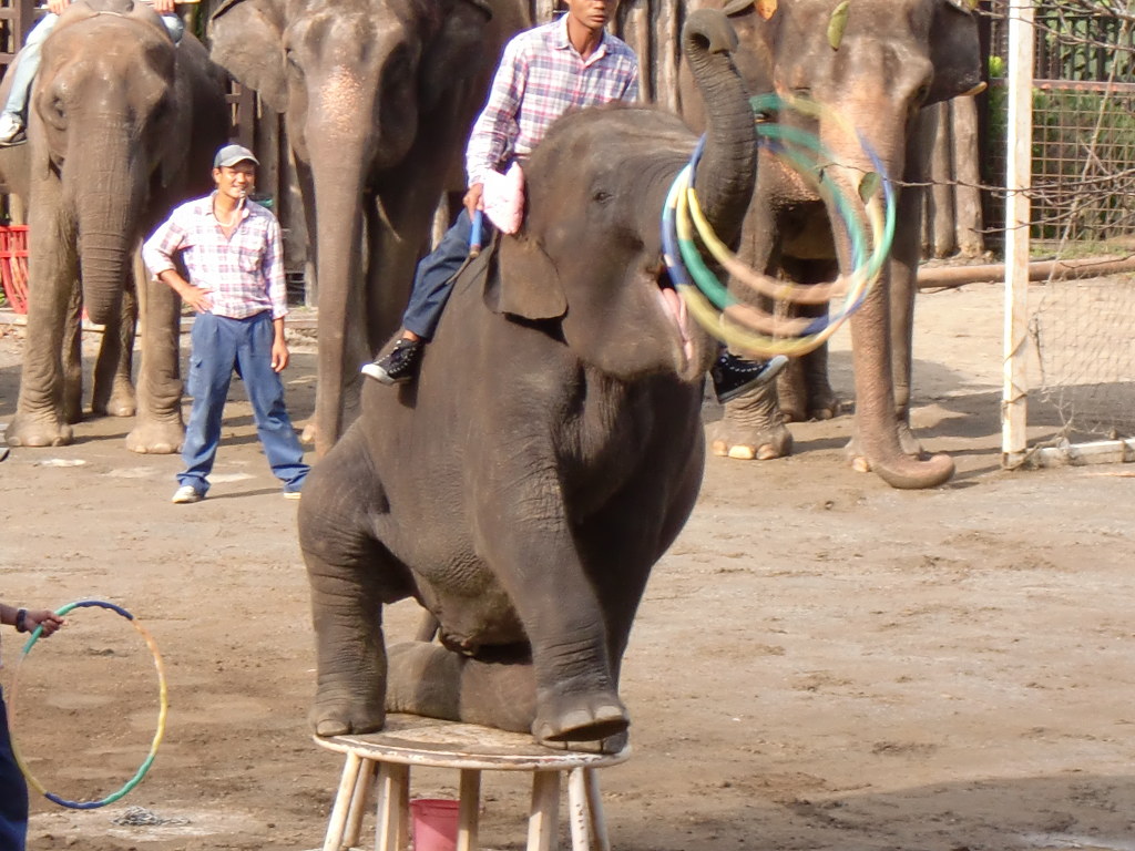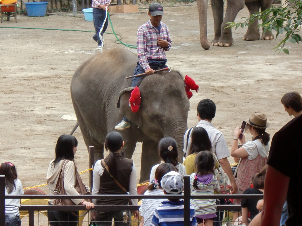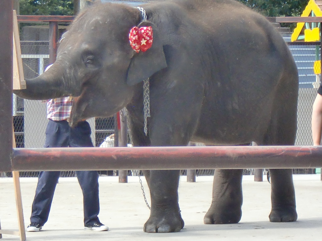 治療も終わり?無事ゾウさんショーに復帰^^。年齢と同じ数だけのフラフープを回すことができます(*^^)v