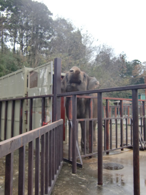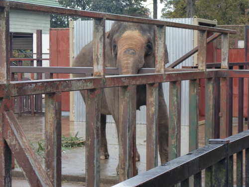 座ってから数分も経たないうちにゾウ舎へ移動すると、ミッキーとミニスターがそれぞれいつもいる外の檻の中にいました。パッと見た感じでは2頭とも体調不良のようには見えず、普段通りに見えます。