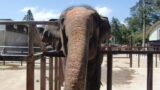 ゾウ使いさんに体を洗ってもらった後、体が痒くなって柵でかいている様子。(爆笑)