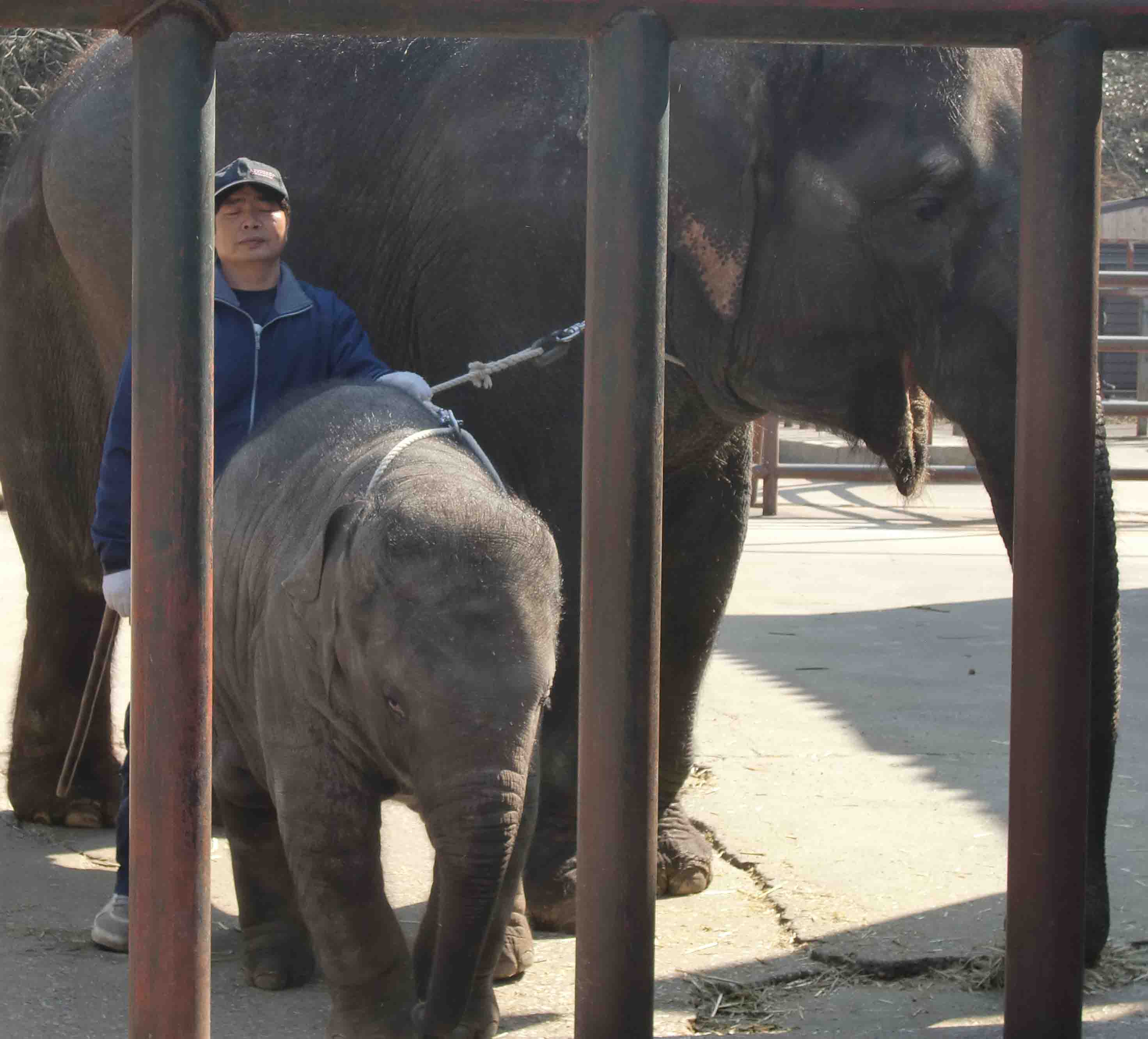 まだ午後の1時間だけだと思っていたこの日、着いてすぐの午前中に、ゾウ舎内ではありましたが、りり香(+ママのプーリー)が公開されていてビックリ。(嬉)