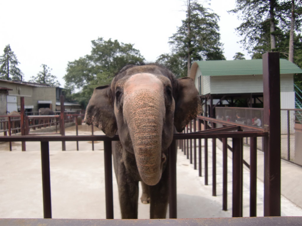 柵があるため、そのゾウ使いさんには何も出来ないと分かっているのですが、彼女なりに勢いを付けてゾウ使いさんに一番近い柵の前まで行き、鼻の付け根をゴンゴンと柵に打ち付けました。
