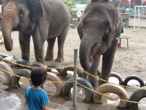 タイヤに足を乗せたりしてまだまだ可愛いゾウさんですが(笑)