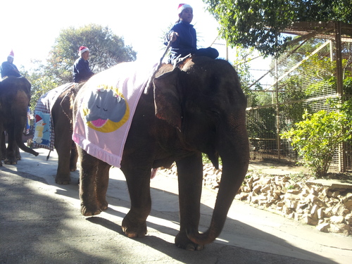 逆光により顔の表情が良く見えないかもしれませんが、丁度お腹に赤ちゃんゾウさんが眠っている部分が!