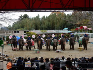 今からぞうさんショー広場に集まったゾウさんの集合写真を載せます。