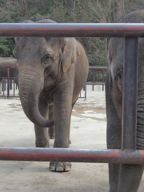 パンダは四十分待ちですが、私はまっすぐゾウさんへ(笑)繁殖の時期ではなかったようで、アティくんは独りでいました。女性陣は食事時以外は仲良く集まってました。食事中はやはり早く食べないとボス?リーダー?のダーヤ姉さんに捕られてしまうから必死の形相でしたよ。また、アティくんとウタイちゃんのベビーはどうなるんでしょうかね 0
