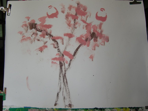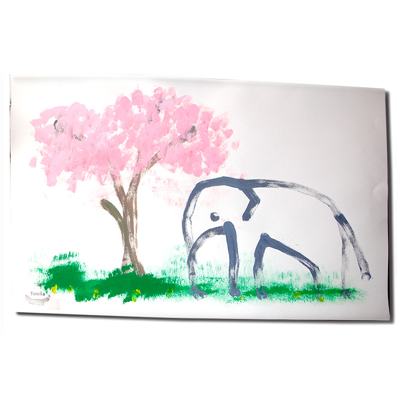 今、ゾウさんショーでゆめ花(か)が描く絵と、ゆめりりパフォーマンスでゆめ花とりり香(か)が描く絵は「桜」なのですが・・・あ。どちらの作品も撮影していませんでした。(笑)