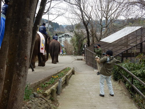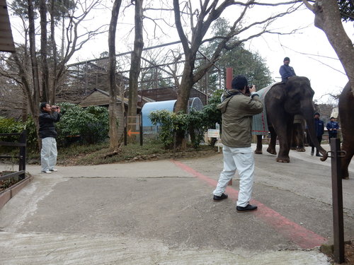 その様子を撮影しようと(笑)カメラを出した私の前を通り過ぎようとした飼育員さんが私も行進中のゾウさんたちを撮影するのかと勘違いされ、一瞬遠慮しそうになってしまったのですが、「気にしないで撮ってあげて下さい!」と思わず言ってしまいました。(爆笑)