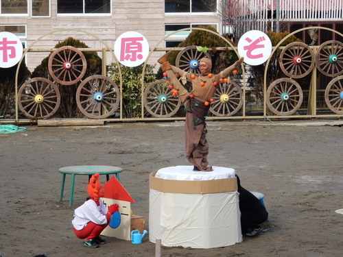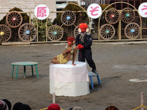 例年ならこのタイミングで何かしらに扮した園長がちゃんと「悪さをした鬼たちをお仕置きだー!」的なことを言って(笑)入場してきてくれるので分かるのですが、今年は何故か園長は不参加。(驚!)