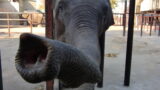 この檻、隣の檻と遮るものがなく、ラージャ元気君1頭で行ったり来たりできるように。