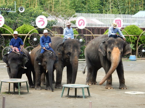 毎年夏休み期間に行われている、ゾウさんの水浴びショー。
