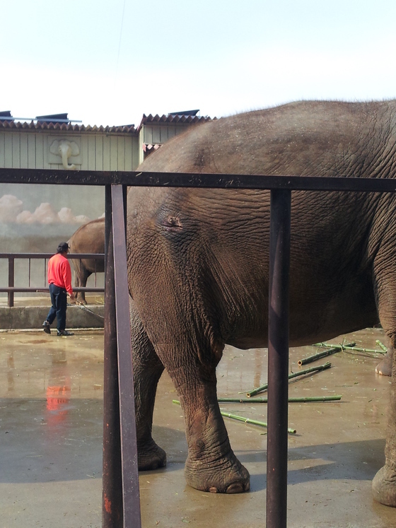 ようこの上に乗っているゾウ使いさんだけでなく、治療時には別のゾウ使いさんがちゃんとフォローに入るのですね。