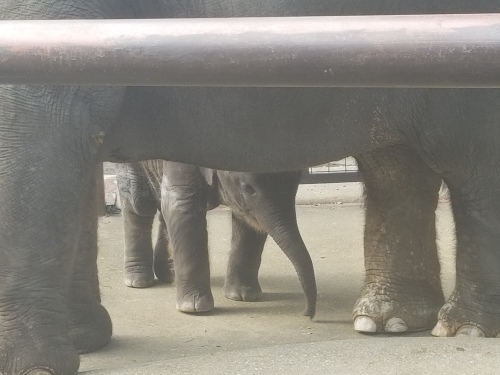 市原ぞうの国 2018年11月 プーリーともも夏 2 Twitter Facebook はてブ Pocket LINE コピー 2018.12.06 通りぬけることは難しいかもしれないけど・・・まだママ(プーリー)のお腹の下から顔が見える高さ♡♡ 前回はあまり気にならなかったけど・・・。ママゾウのプーリーの右足後ろ。頻尿でしょうか。。。 ※※※おまけ※※※ 食べ物を「ギュー!」と鳴いて催促してくる元気なもも夏のお姉ちゃんゾウ「ゆめ花」が描いた絵。「お母さんと妹」ですって♡