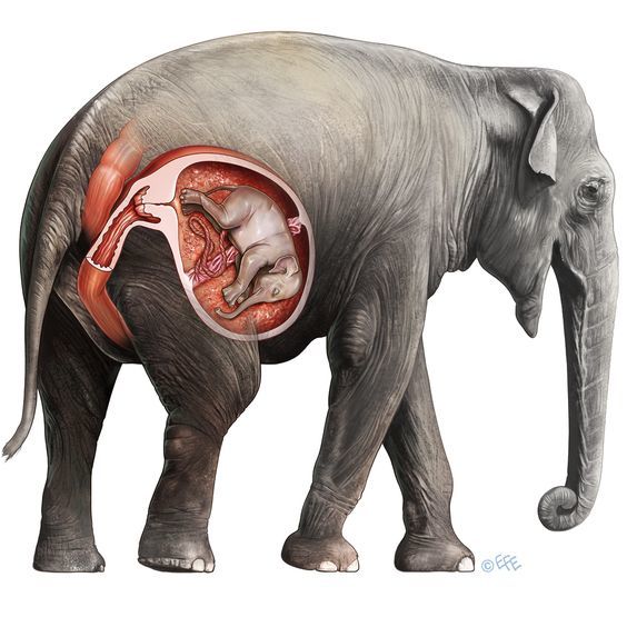 以前赤ちゃんのいる場所がなんとなくわかりにくい、とお伝えしていた通りで、先日偶然妊婦中のアフリカゾウのイラストを見て、なら!とアジアゾウ版の画像を引っぱってきました。