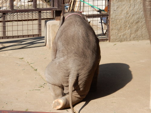 市原ぞうの国 2019年2月 もも夏 Twitter Facebook はてブ Pocket LINE コピー 2019.02.14 もも夏のある日の1日。(お外編) お客様の待つお外へかっこよく参上したもも夏。 可愛くご挨拶して・・・(もうこんなに可愛くご挨拶ポーズとることができるようになったのね・・・・感涙) ゾウ使いさんに遊んでもらって・・・ ウトウトして・・・(笑) 力が有り余って・・・脱走しようとして・・・(笑) やっぱりゾウ使いさんに注意されて・・・・ガッカリするもも夏でした・・・。(肩を落とすとはこのこと!?笑)