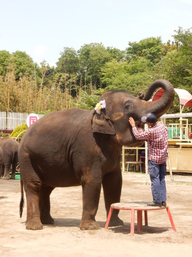 ゾウ使いさんが台に乗る程大きく成長中。(笑)