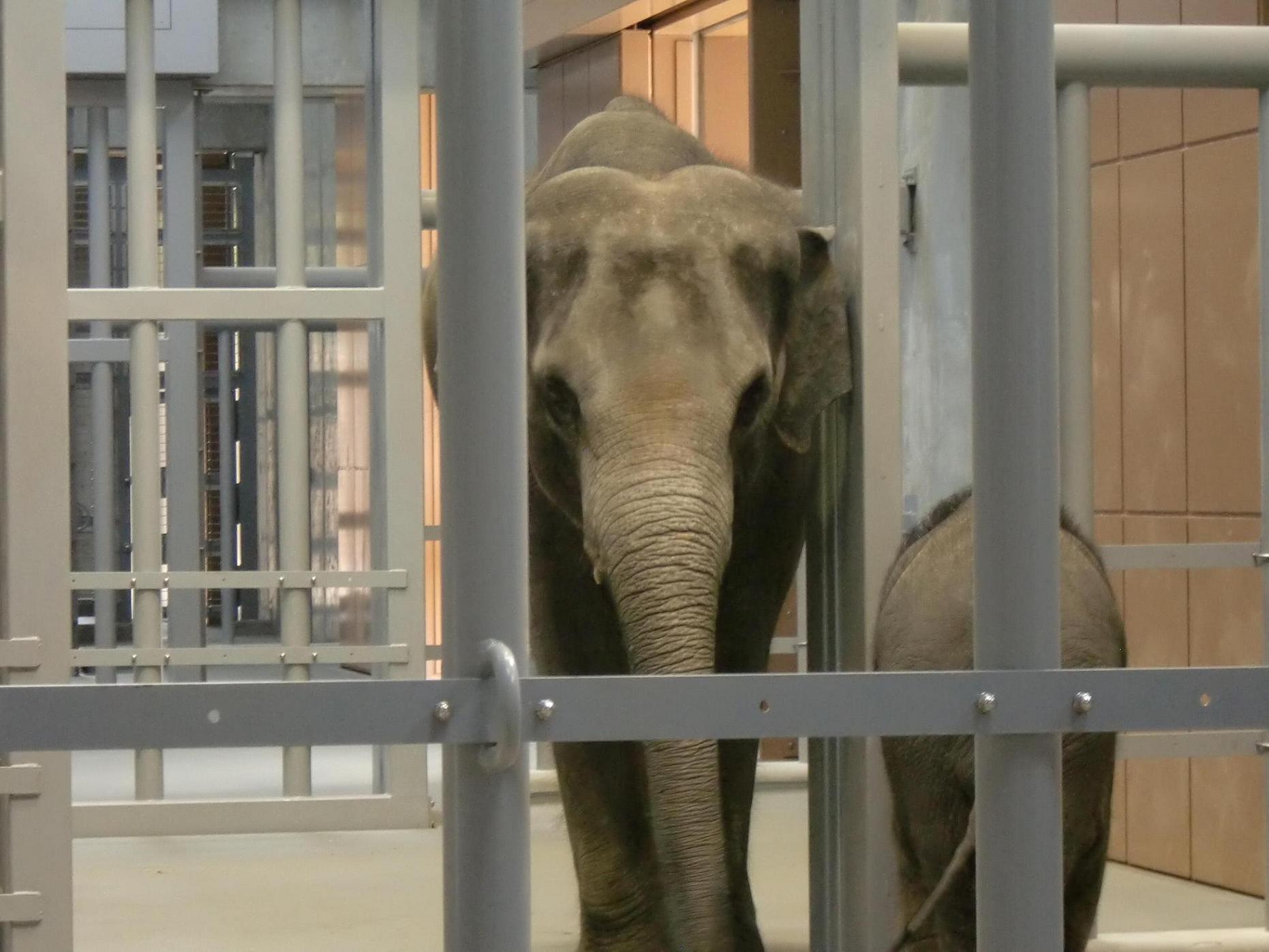 ママのアヌラちゃんとさくらちゃんは基本的に新ゾウ舎内で過ごしているようです。
