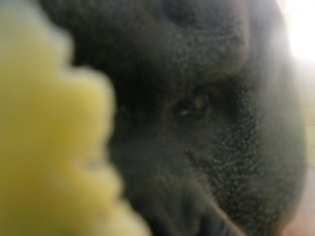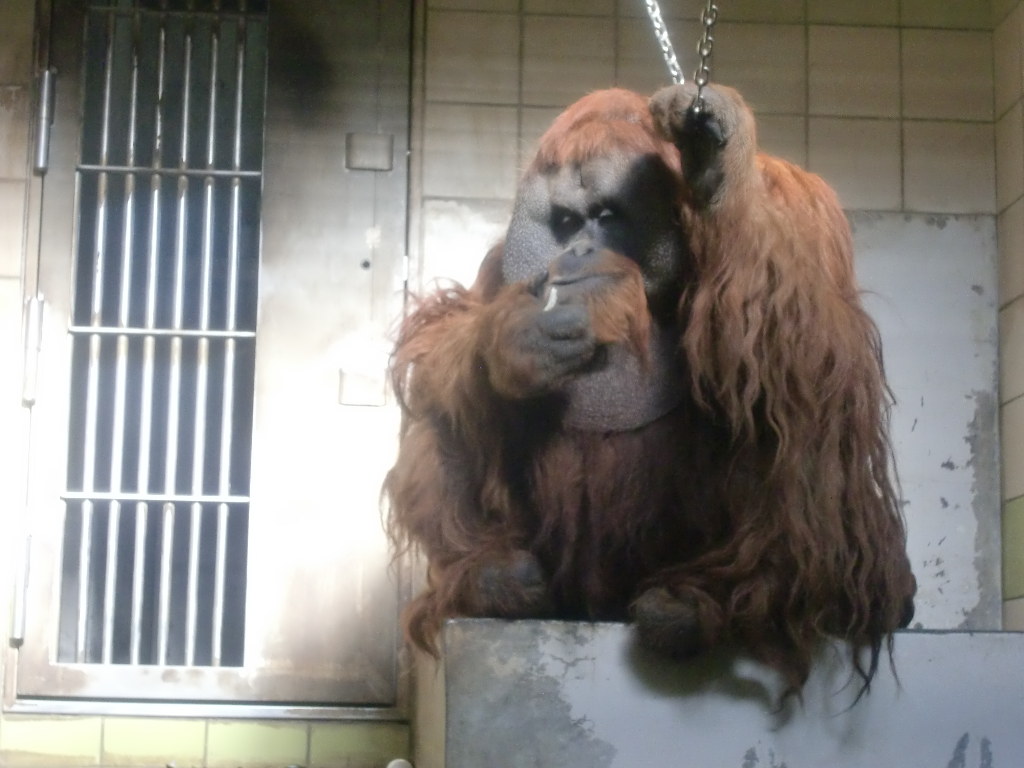 唯一離れた時(笑)は、飼育員さんからご飯をもらう時(笑)と、外から室内に戻るムカちゃん(オラウータンのメス)がバリの部屋の前を通る時。