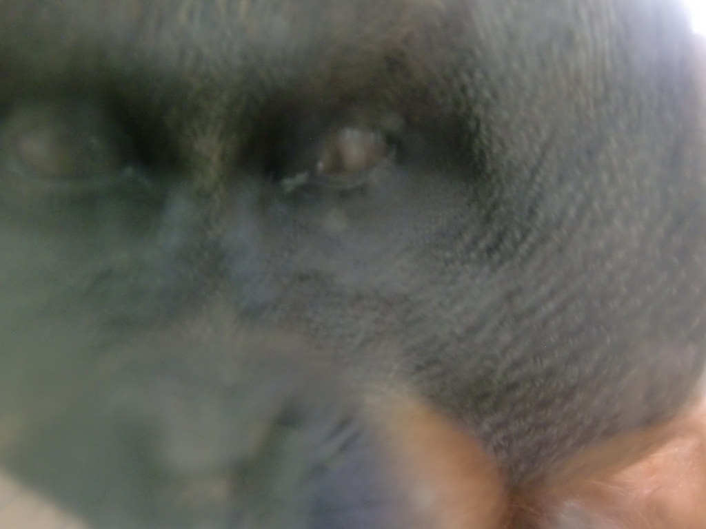 ご飯の1つに、さつまいもがあるのですが、一度口に含んでペースト状にした後(笑)、下唇を使って窓ガラスにそれはそれはキレイに付けます。(苦笑)しばらくすると・・・キレイに口に戻します。(^_^;)