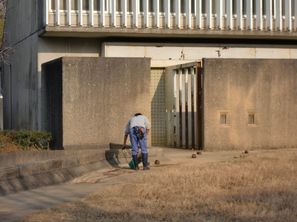 やっぱり?(苦笑)室内に入った後だったらしく・・・(爆笑)放飼場には掃除をする飼育員さんのみ。
