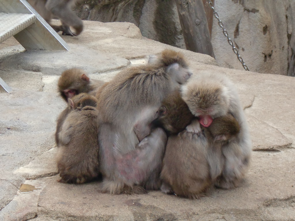 私が言っている「寒さ」が伝わるのでは?と思える密集したサル。(笑)