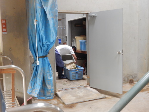 放飼場からゾウ舎内に続く扉の前をウロウロしているのはいつも通りです。(苦笑)