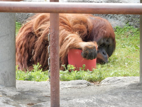 そのストレスのために、バリはムカ(オランウータンのメス)と飼育員さんに八つ当たり?をするようになったようです・・・。(涙)
