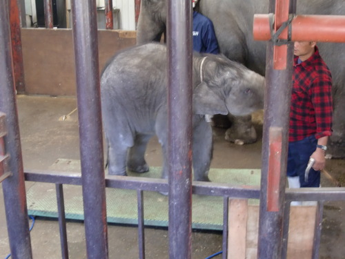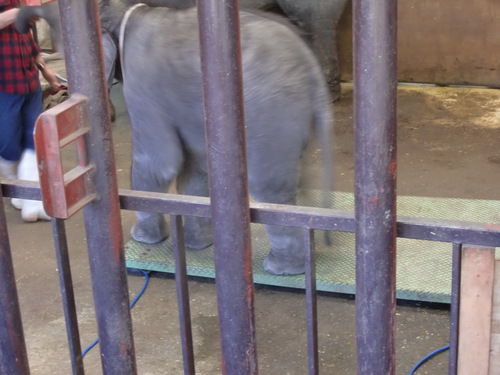 ご存じの方も多いと思いますが、ぞうの国の赤ちゃんゾウさん用の体重測定機?はよく壊れます。(笑)