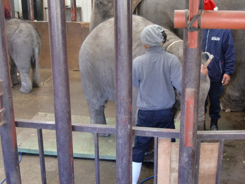 ゾウ使いさんたちは体重測定だけで一苦労ですけど・・・。